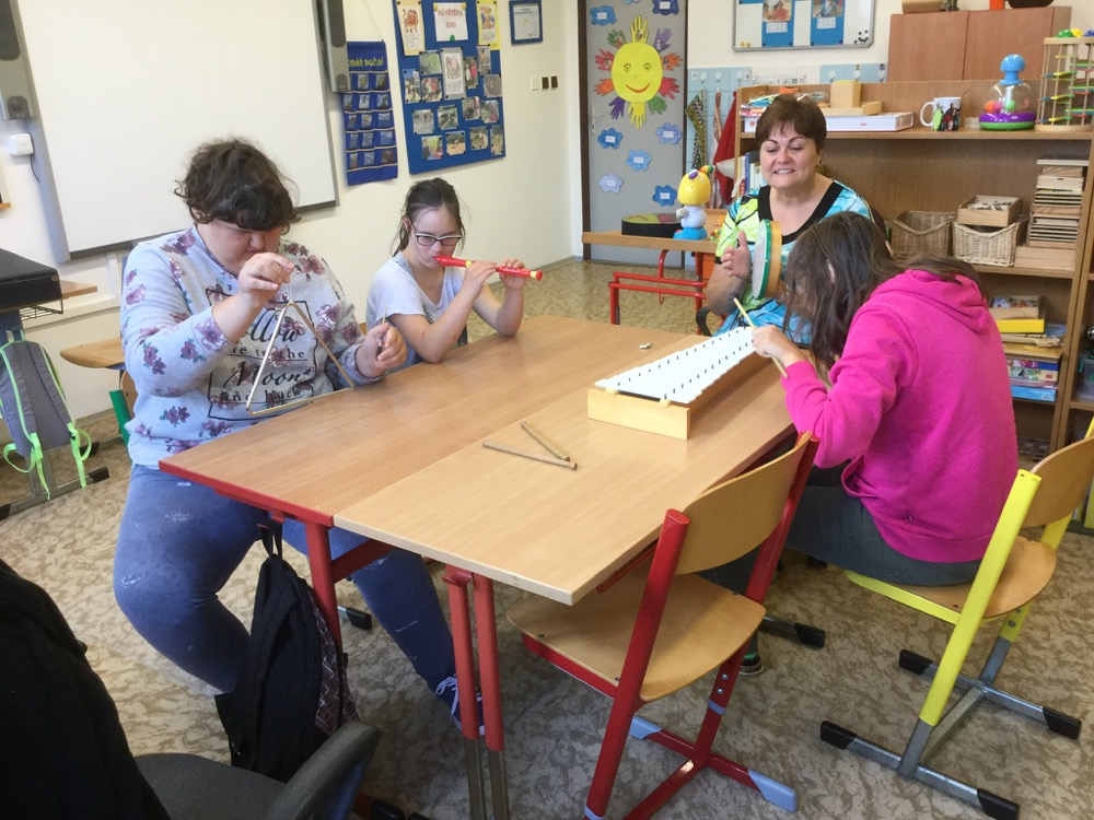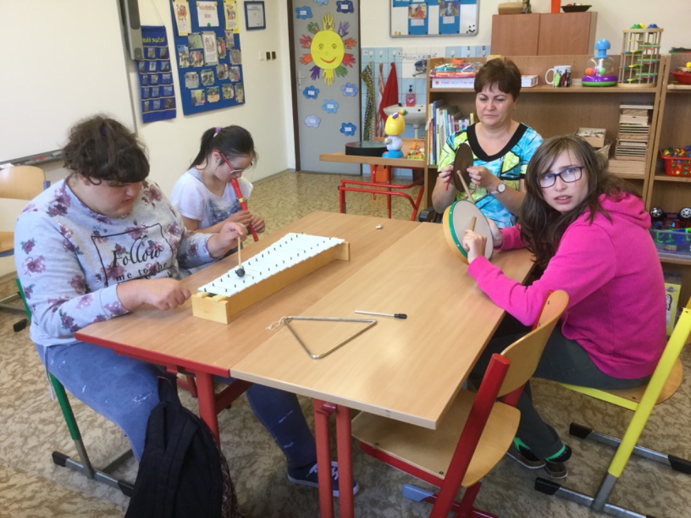 V hudební výuce nejen zpíváme, tančíme, ale i zkoušíme hrát i na různé hudební nástroje.