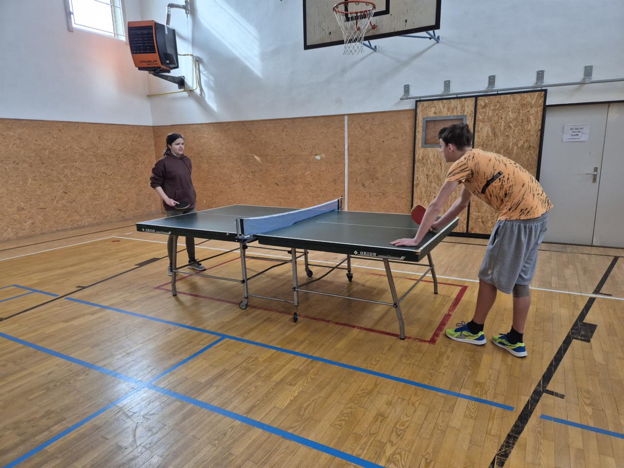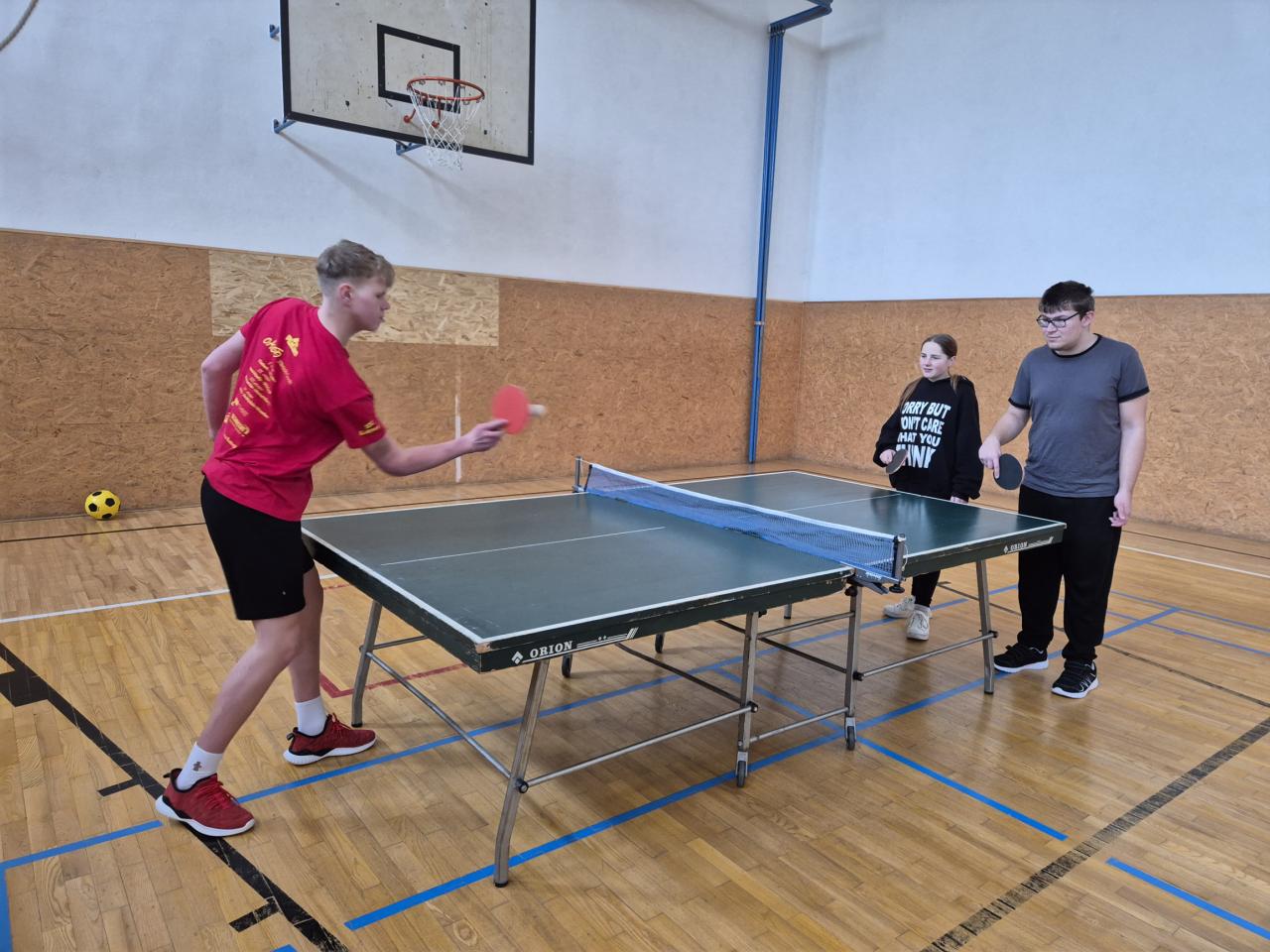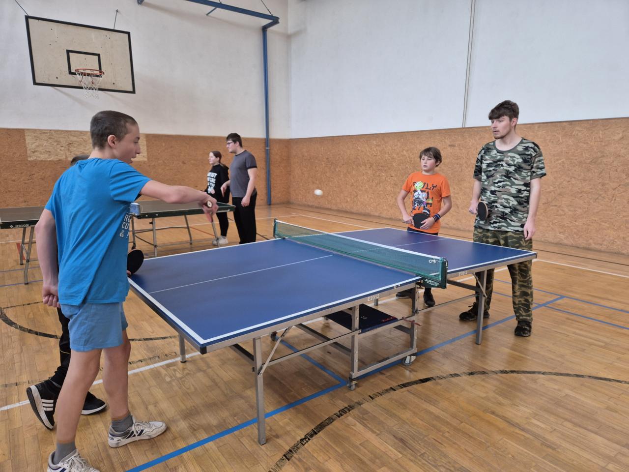 Dnes jsme si v tělocviku vyzkoušeli ping pong. Byla to celkem zábava, dařilo se nám odehrát míček a trefit se na soupeřovu polovinu, ale i tak máme ještě co zlepšovat.