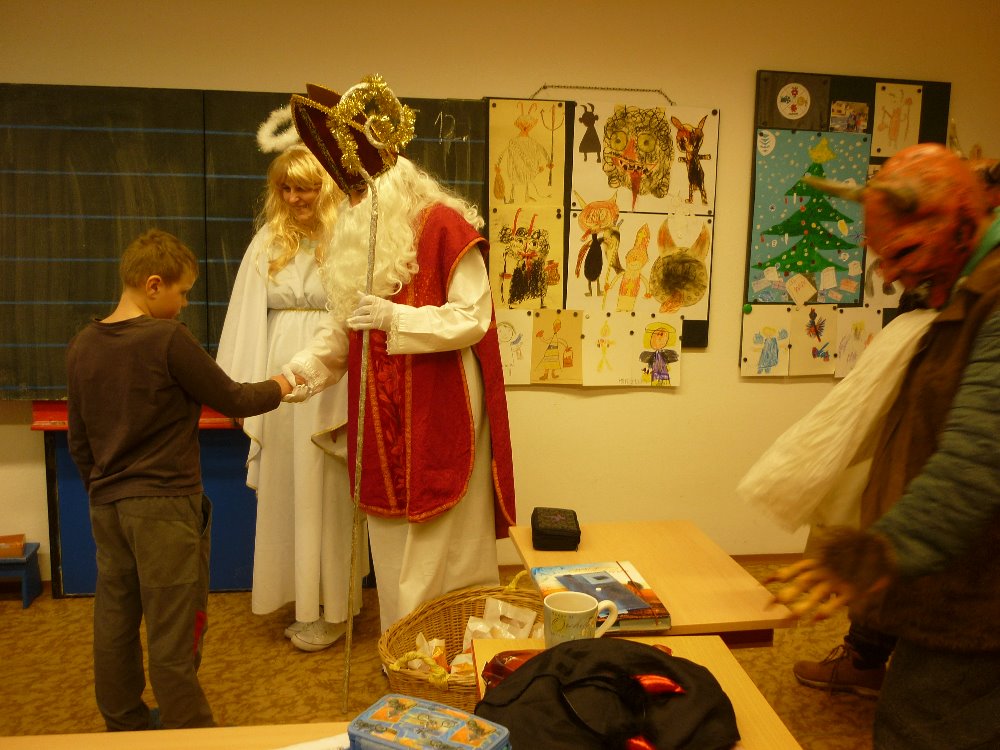 Je 5. prosince a svatý Mikuláš se opět po roce vydává mezi děti, aby je buď pochválil, nebo pokáral za jejich zlobení. Na pomoc si bere anděly, kteří mu pomáhají rozdávat balíčky plné sladkostí hodným dětem a čerty, jež ty neukázněné trestají. Nejinak tomu bylo i na naší škole. Svatý Mikuláš je uctíván jako patron námořníků, obchodníků, lukostřelců, dětí, lékárníků, právníků, studentů a vězňů. Někteří žáci byli trochu vyděšeni, ti nejmenší se schovávali za paní učitelku, ale většina dětí se mile usmívala, když Mikuláš přečetl jejich jméno z kouzelné knihy. Ti nejzlobivější se nebáli ani těch nejděsivějších pekelníků, ale před peklem se museli vykoupit básničkou nebo písničkou. Nakonec vše dopadlo dobře, pekelníci odcházeli s prázdnými pytli.