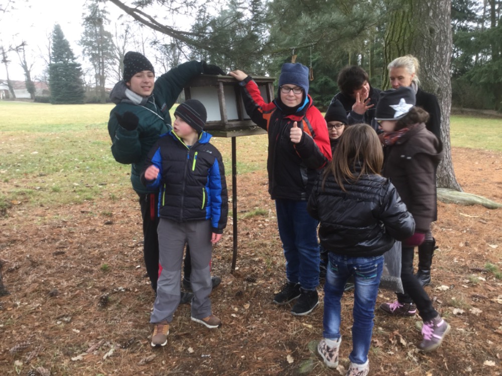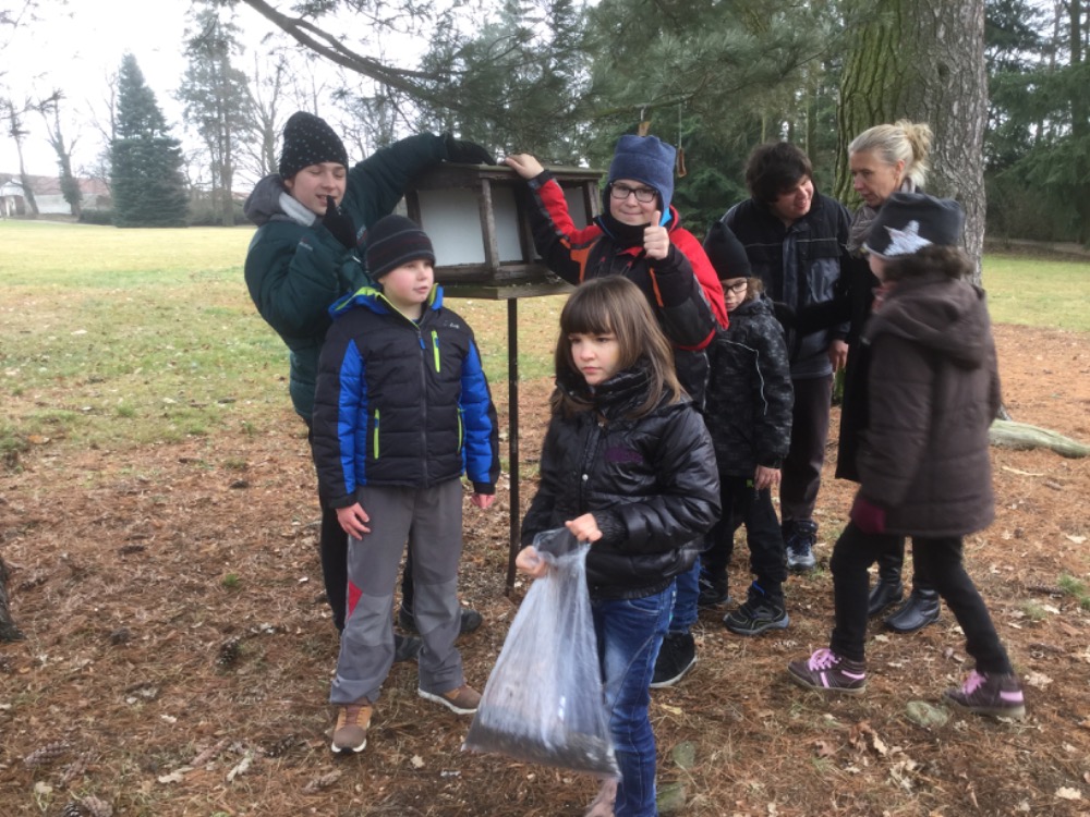 V rámci výuky prvouky jsme poznávali zámecký park v zimním období. Do krmítka jsme nasypali slunečnicová semínka a zopakovali si učivo o ptácích, kteří přezimují v České republice.